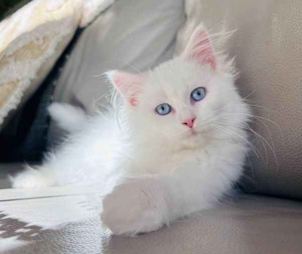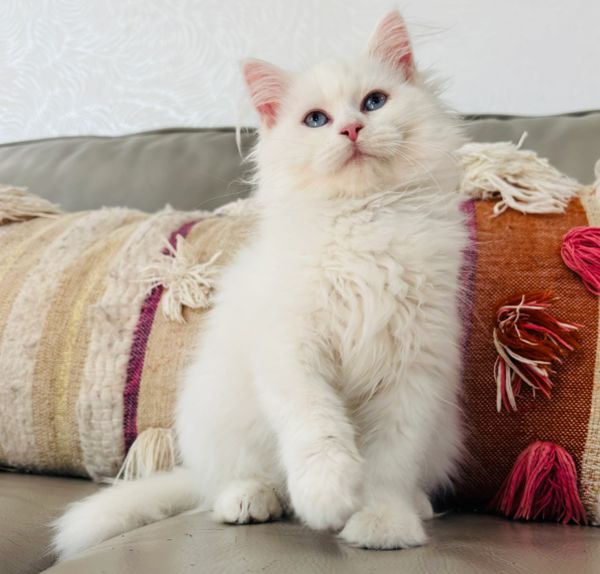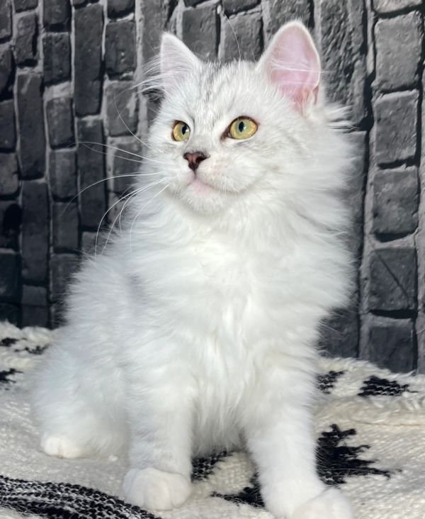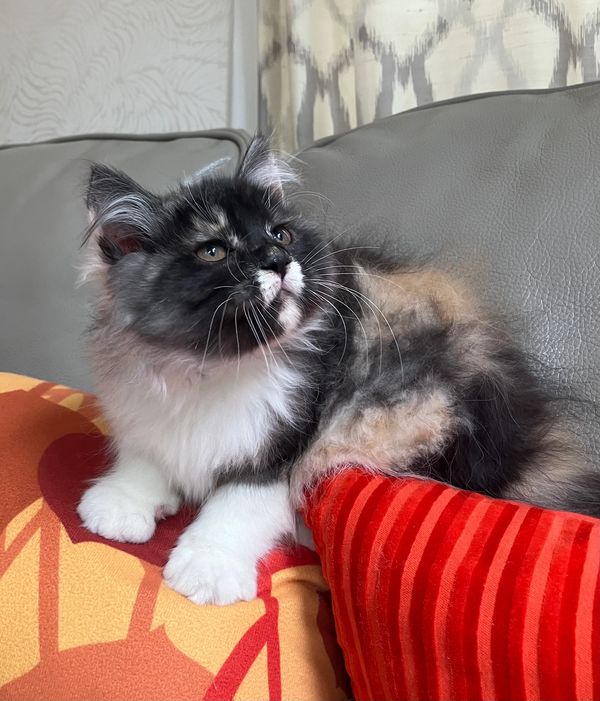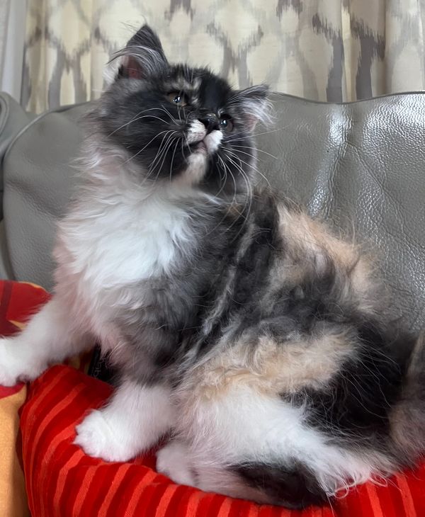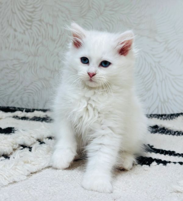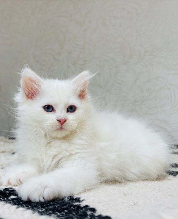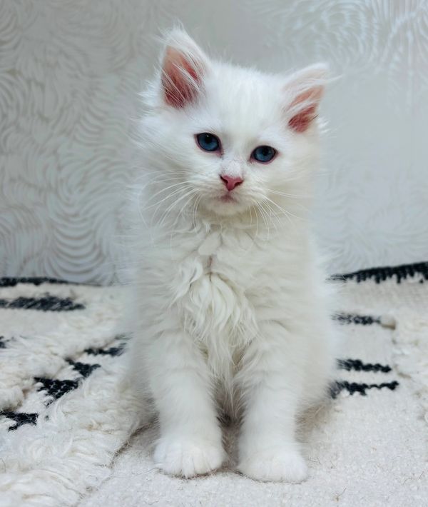 Barbie is registered with the WCF and TICA. Needless to say this Queen is spectacular. She knows she is a beauty queen; she loves to purr, be held; she is very social and calm; she is so very soft and silky. She integrates well with other friendly cats and children. She arrived to us via Russia in 2025, where she was already competing in WCF cat shows as a kitten. Her first cat show in the USA will be in Washington State in April 2025 with TICA.
