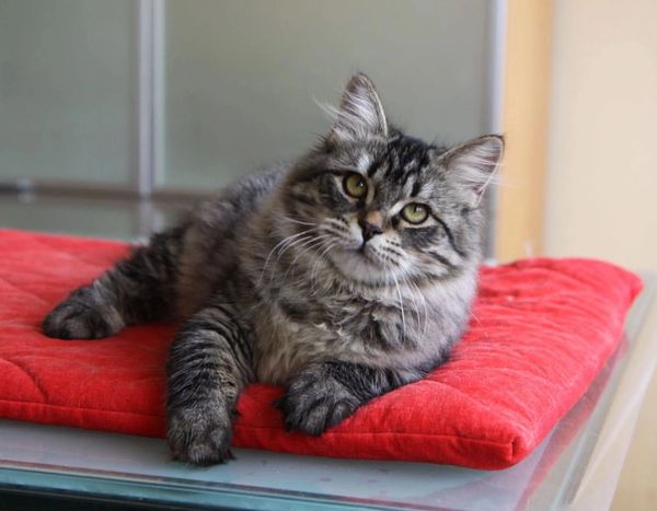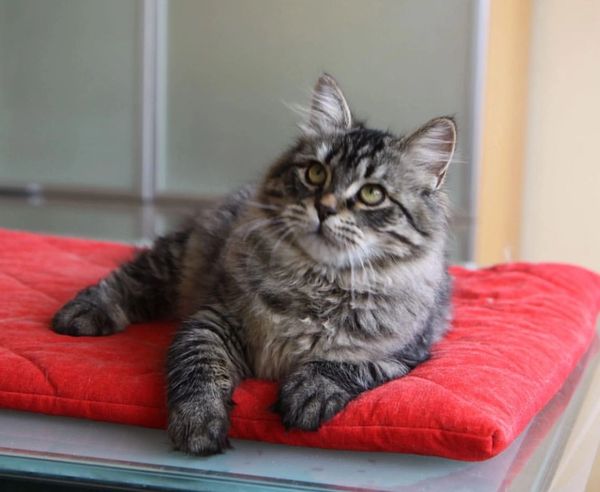 Yugra has recently come to us from Russia. She is part of our foundation pedigree and is a traditional classic black-brown tabby Siberian. Her personality is kind and gentle. Her next litter will be with King Imogen.
