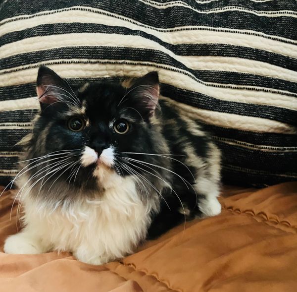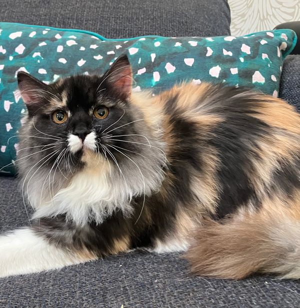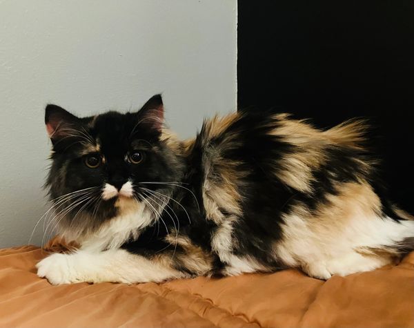 Alula is registered with TICA. Alula is a special girl & has unique genetics. She is a tortie, she carries solid, smoke, dilute and white. She has the ability to birth a variety of kitten colors. Alula is a medium size girl with silky fur. She is shy to strangers but very cuddly and devoted to those she knows. Alula's genetic testing results can be viewed HERE