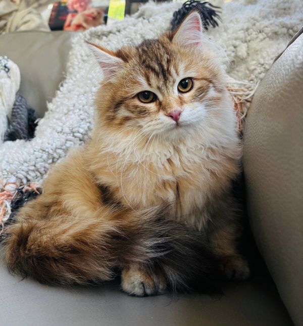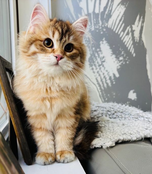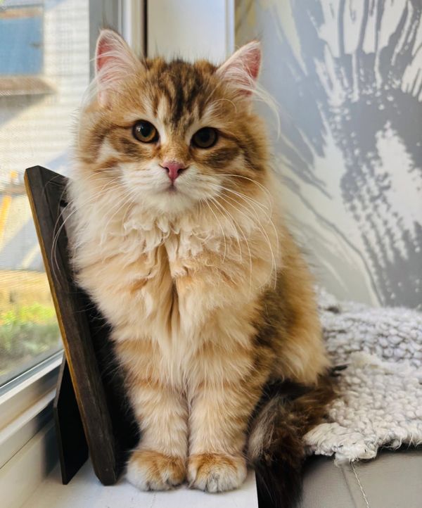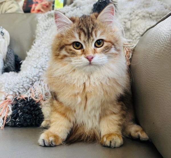 Barbie is registered with the WCF and TICA. Needless to say this Queen is spectacular. She knows she is a beauty queen; she loves to purr, be held; she is very social and calm; she is so very soft and silky. She integrates well with other friendly cats and children. She arrived to us via Russia in 2025, where she was already competing in WCF cat shows as a kitten. Her first cat show in the USA will be in Washington State in April 2025 with TICA.